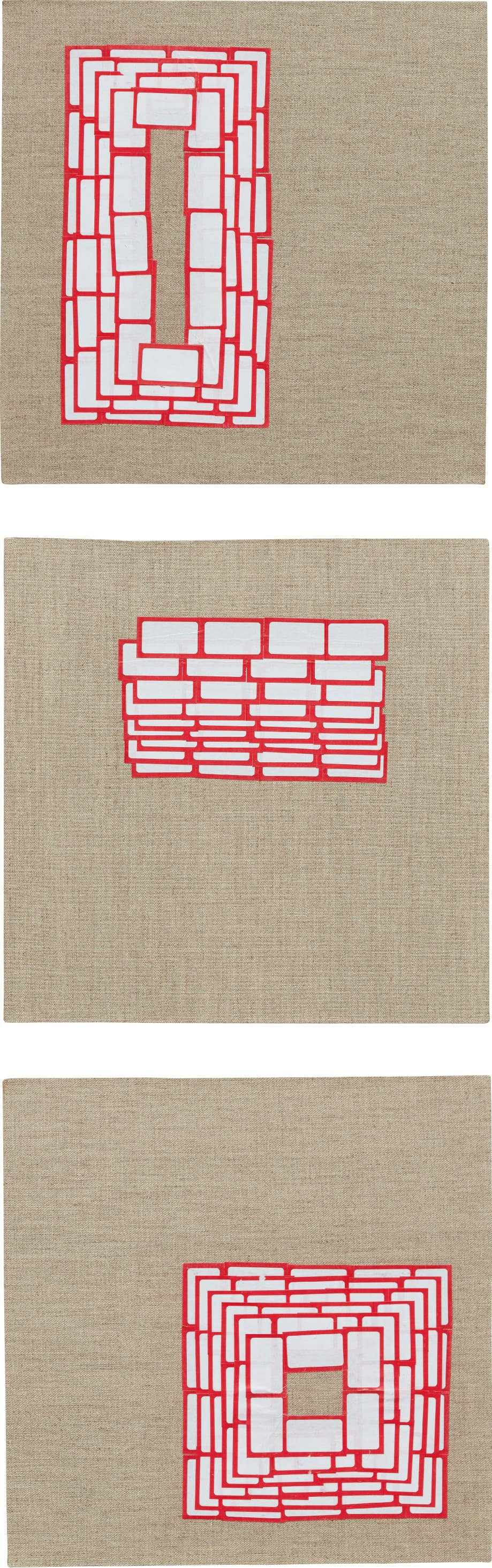adhesive label collage on canvas, in 3 parts