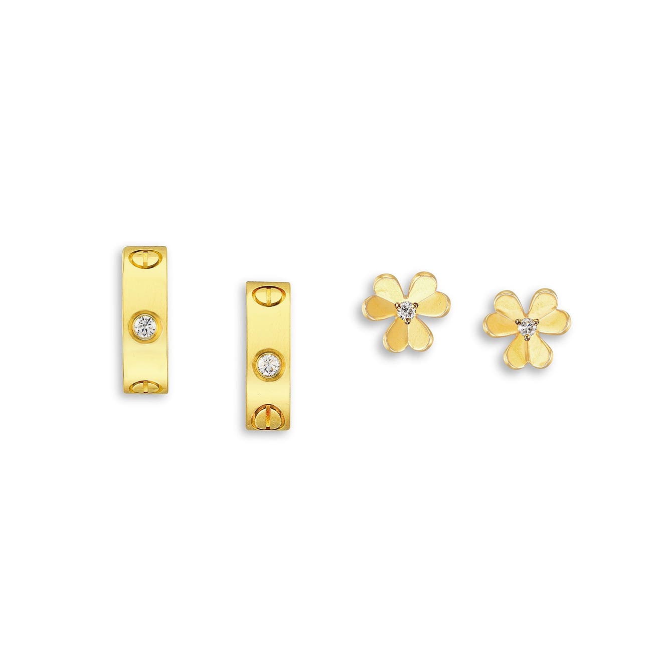 A Pair of Diamond and Gold 'Frivole' Earrings, Van Cleef & Arpels, and A Pair of Diamond and Gold 'Love' Earrings, Cartier