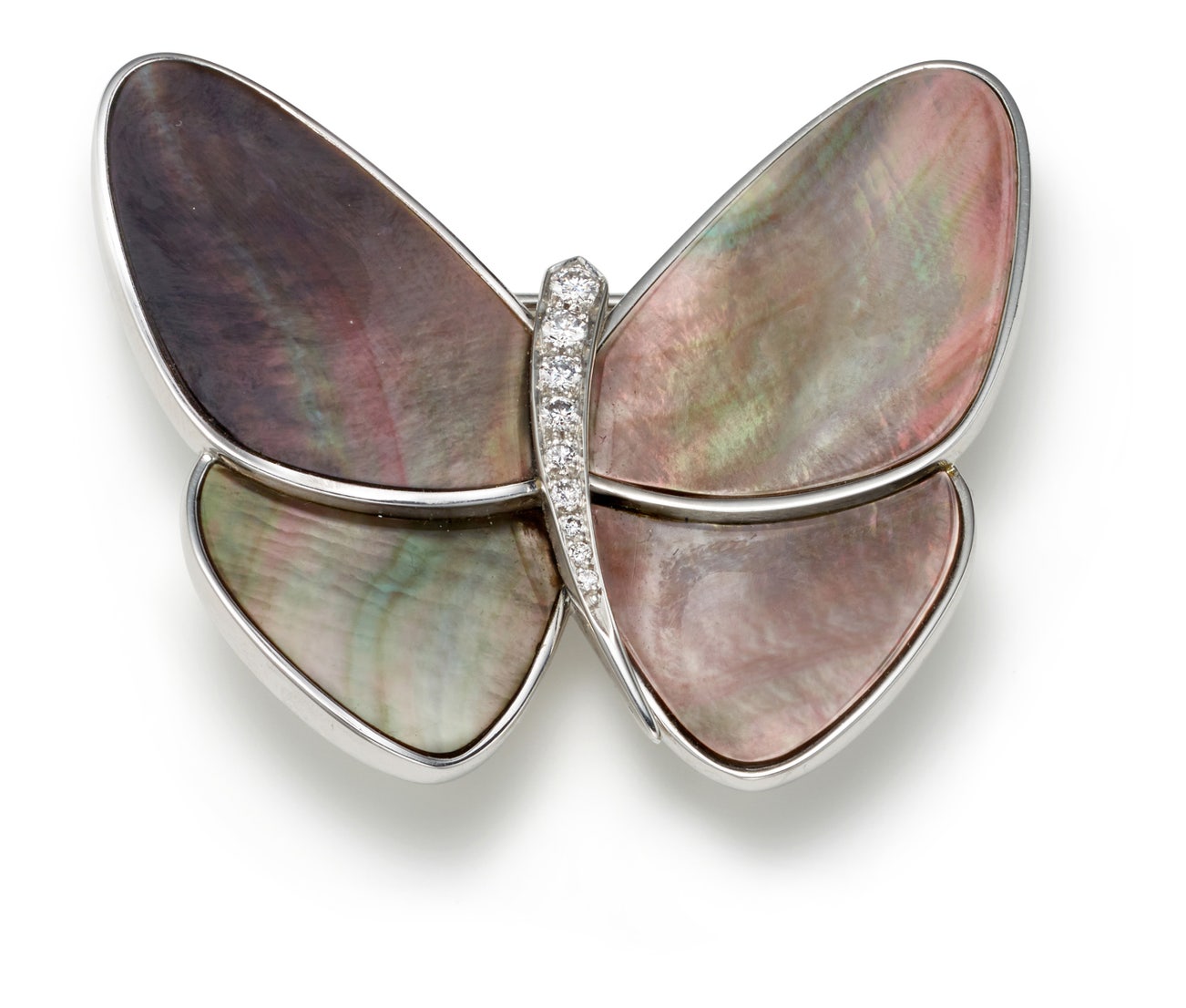 A Mother-of-Pearl, Diamond and Gold Brooch