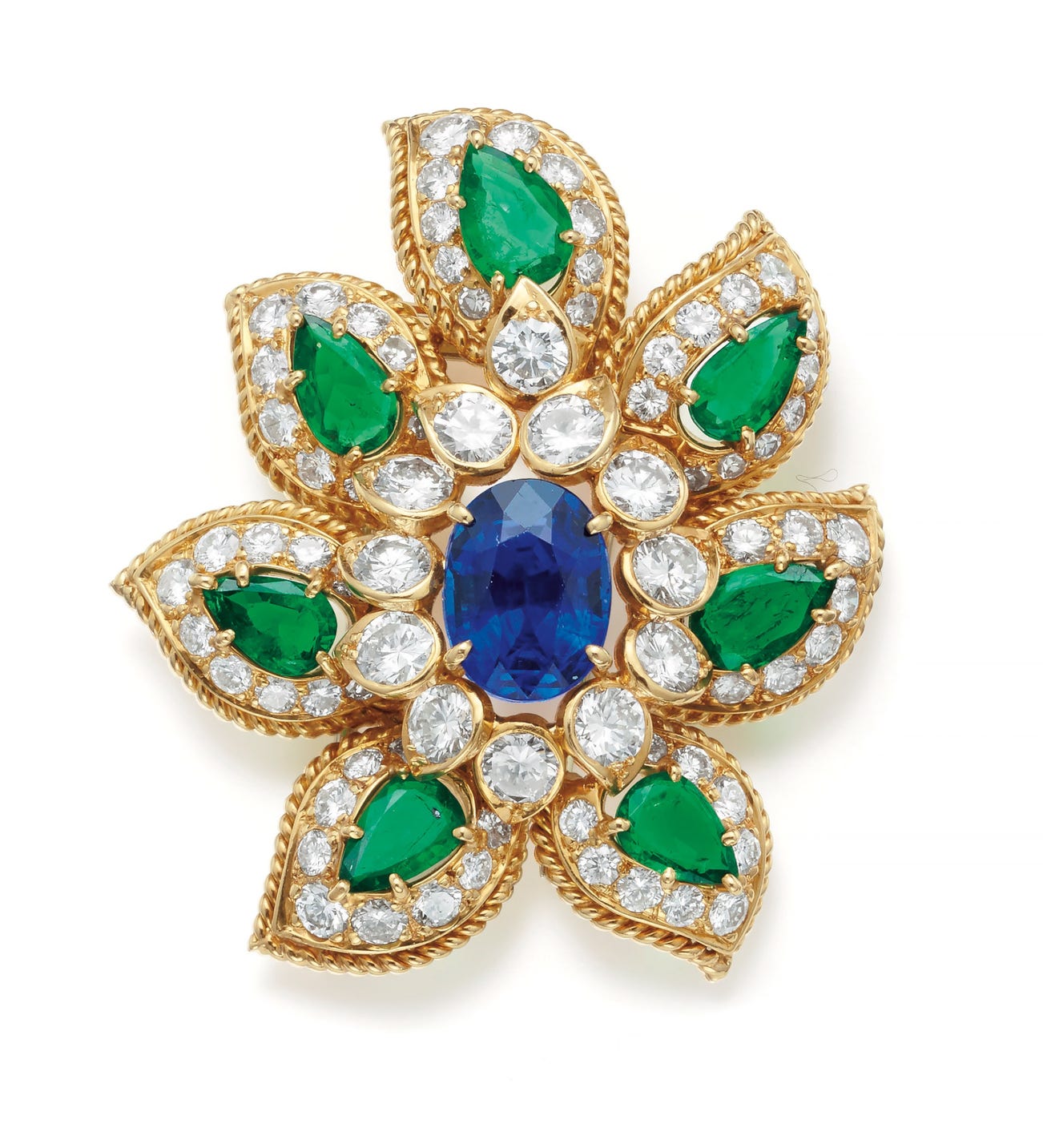 A Sapphire, Emerald, Diamond and Gold Brooch