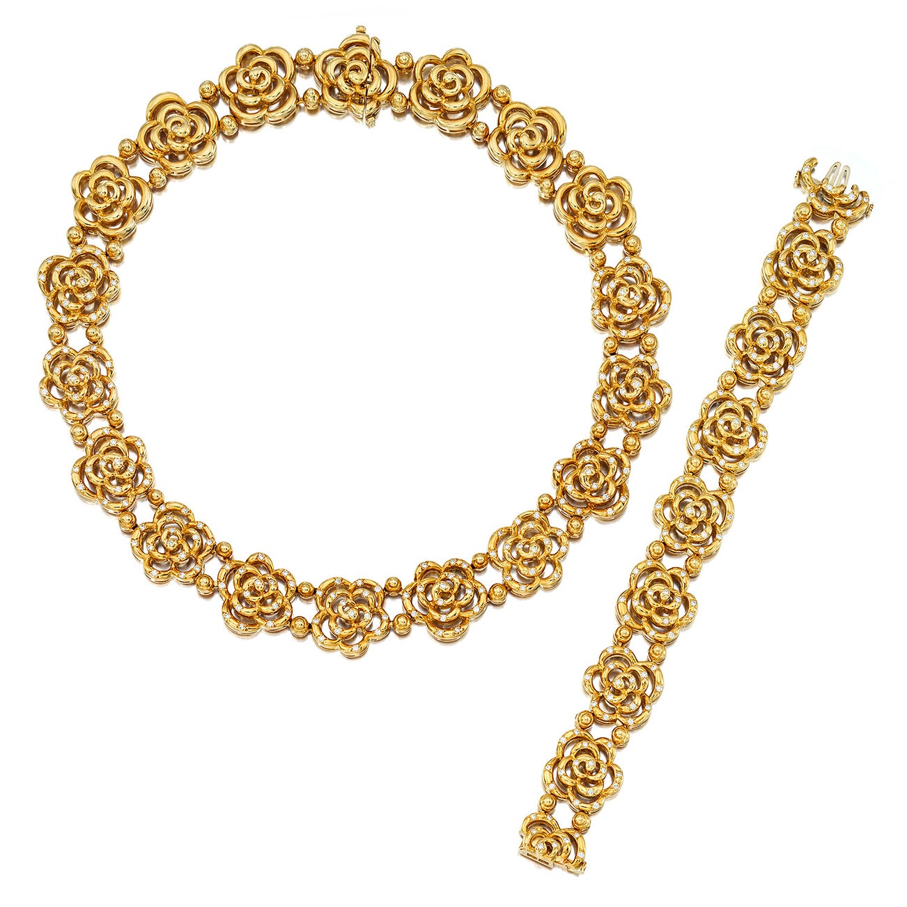 18K yellow gold, necklace length approximately 14 1/2 inches, bracelet length approximately 7 inches