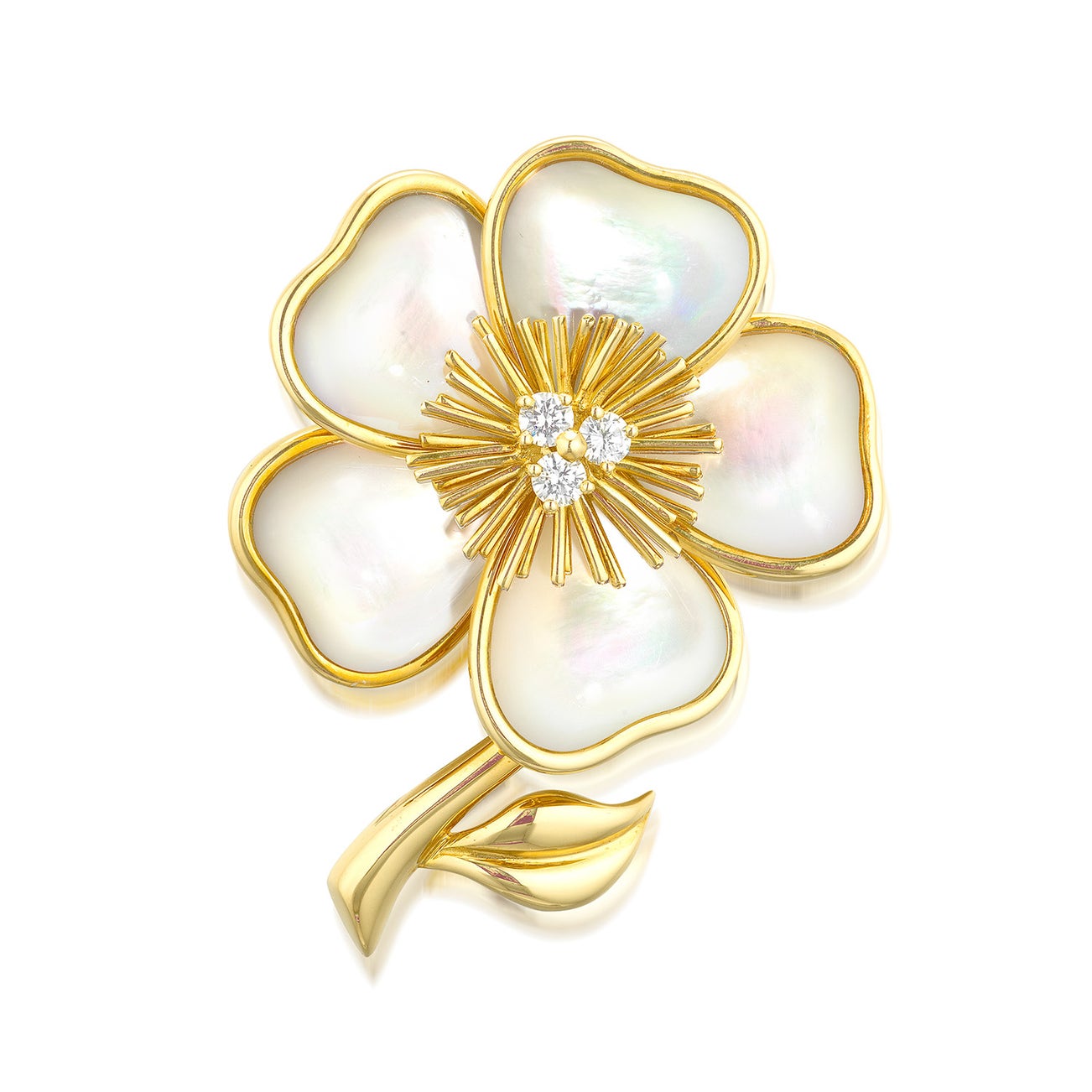 A Mother-of-Pearl and Diamond 'Clématite' Brooch
