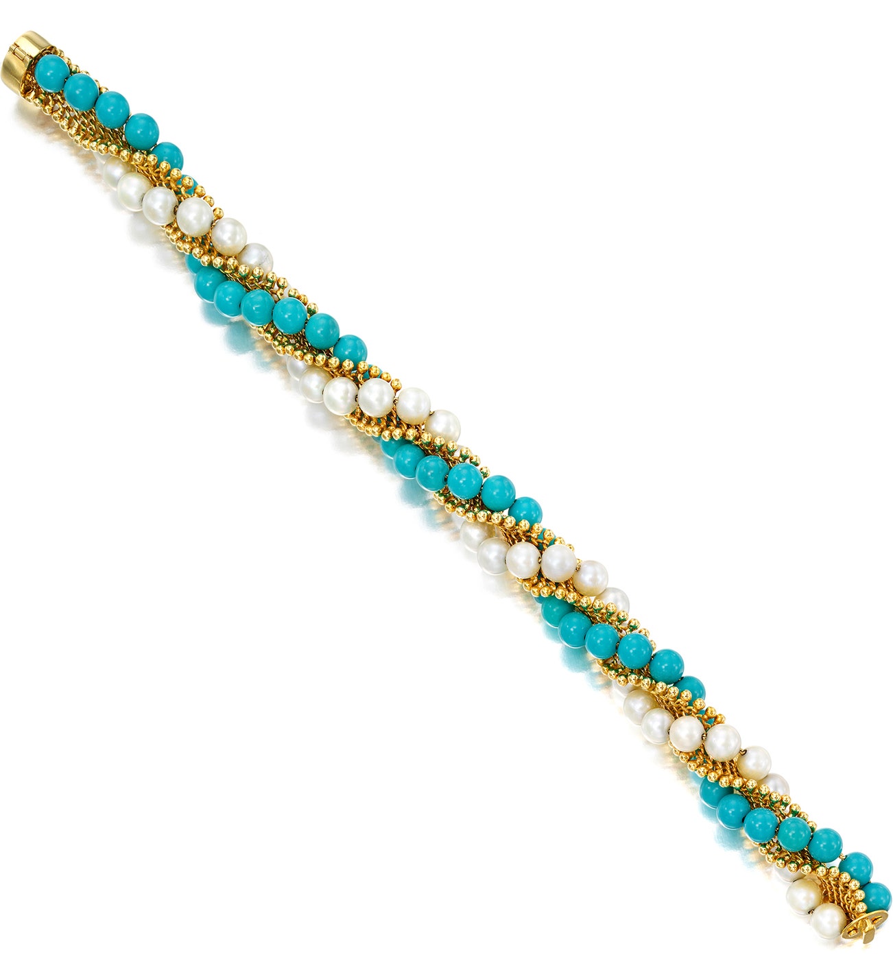Turquoise and Cultured Pearl Bracelet, 'Twist'