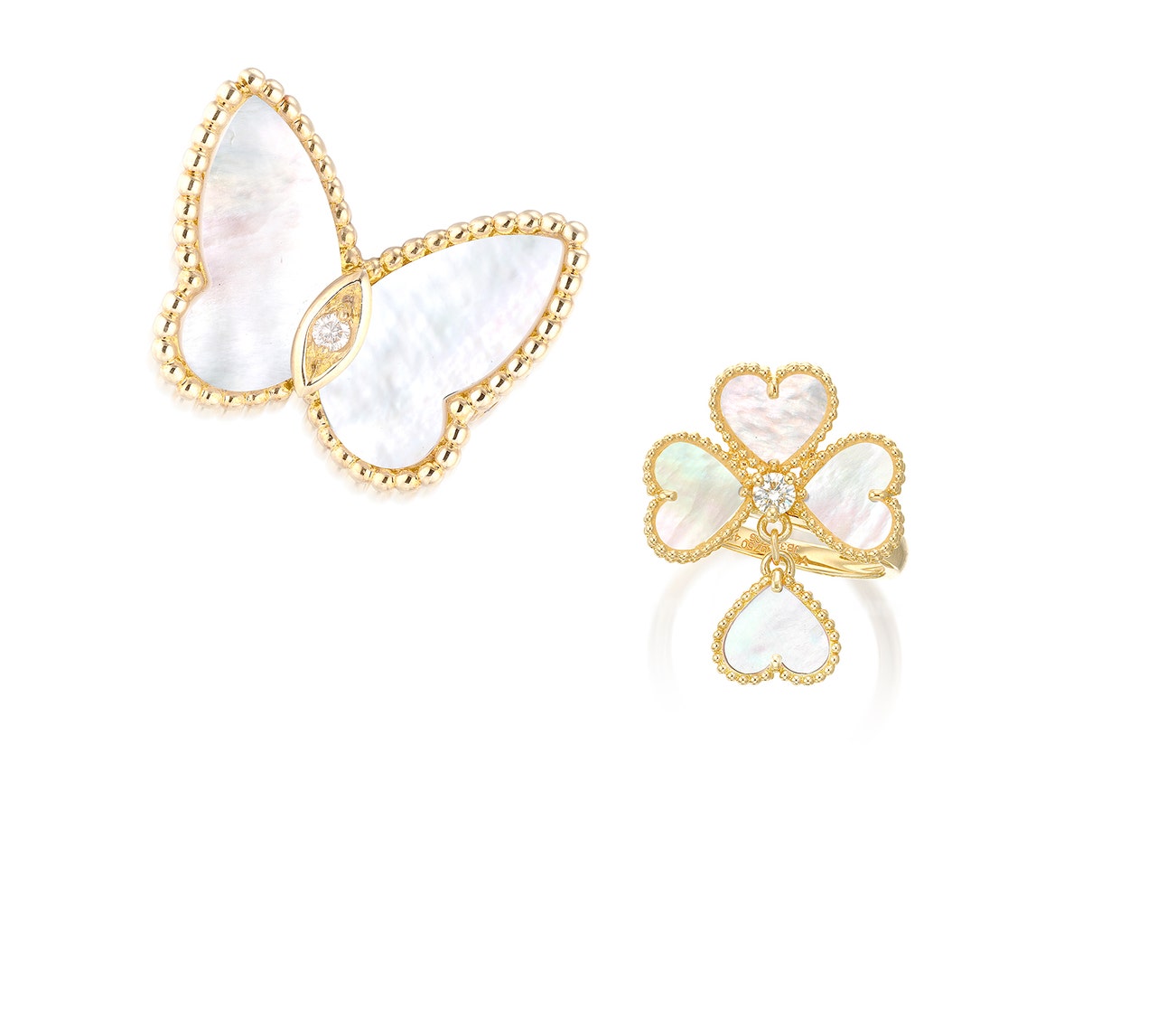 Mother-of Pearl and Diamond Brooch and Ring, 'Butterfly' and 'Sweet Alhambra Effeuillage'