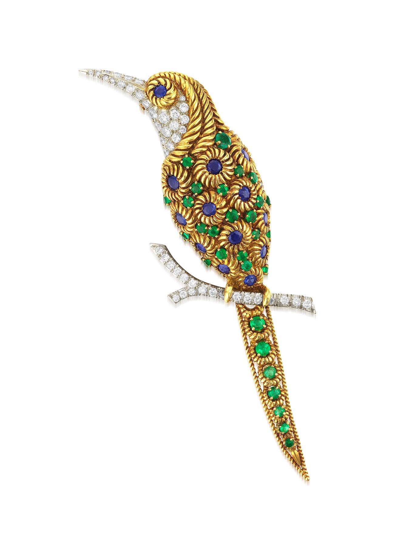 Gold, Sapphire, Emerald and Diamond Brooch, 1966