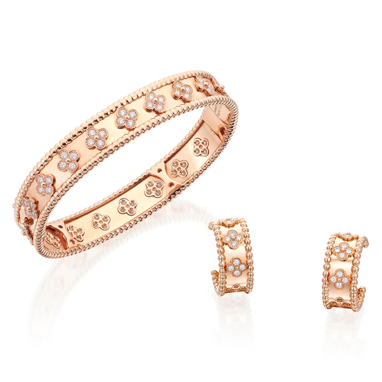 Diamond Bangle and Pair of Earrings, 'Perlée Clovers'