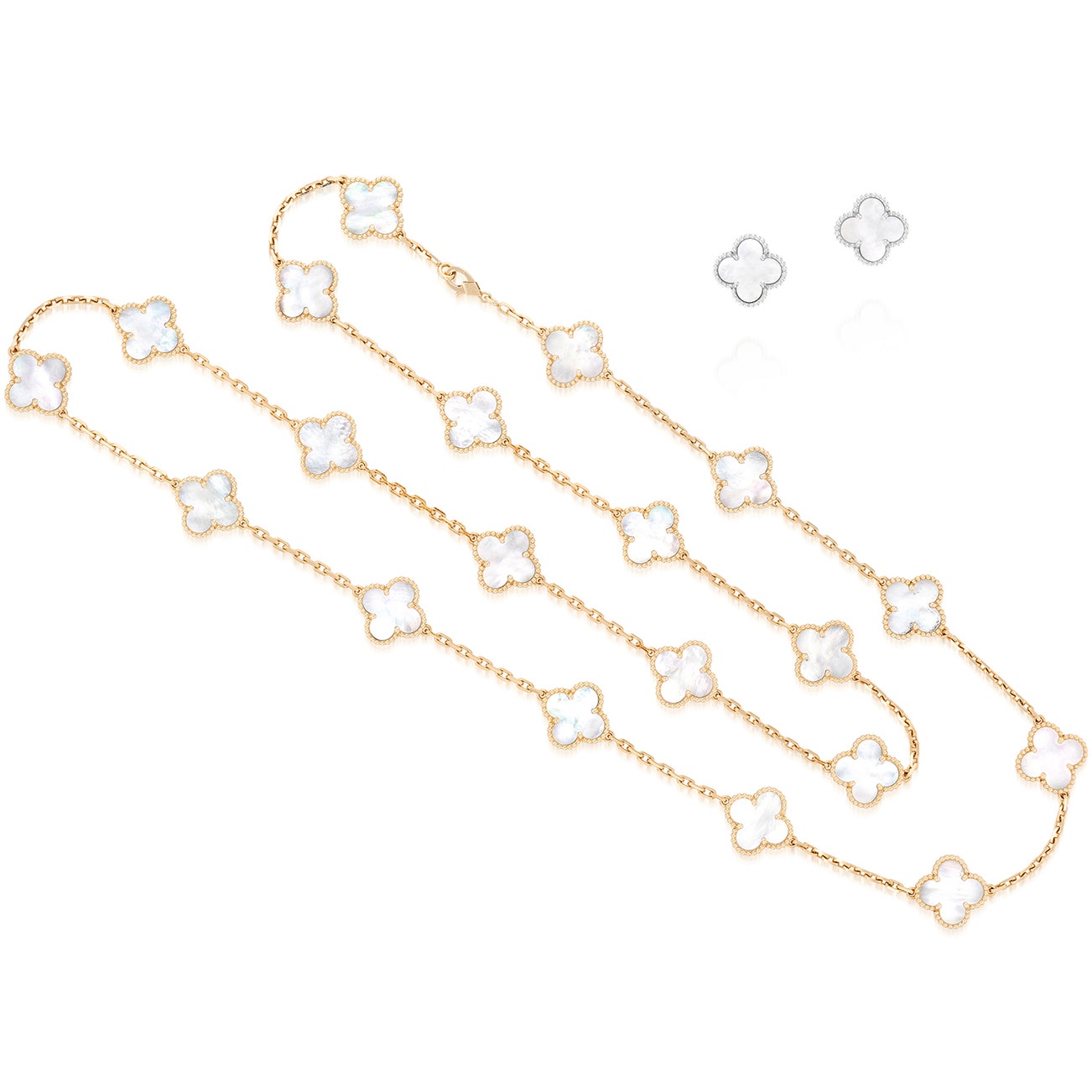 Mother-of-Pearl Sautoir and Pair of Earrings, 'Vintage Alhambra'