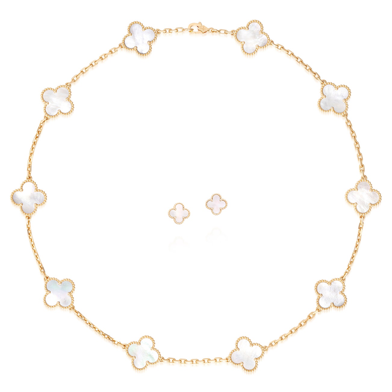 Mother-of-Pearl Necklace and Pair of Earrings, 'Vintage Alhambra' and 'Sweet Alhambra'
