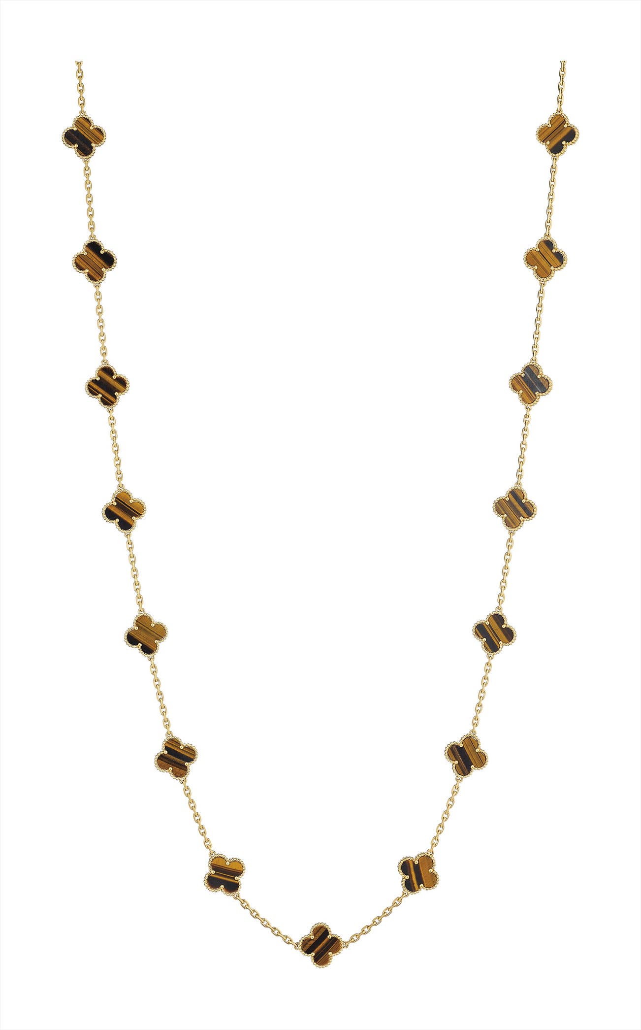 A Gold and Tiger's Eye 'Alhambra' Sautoir Necklace