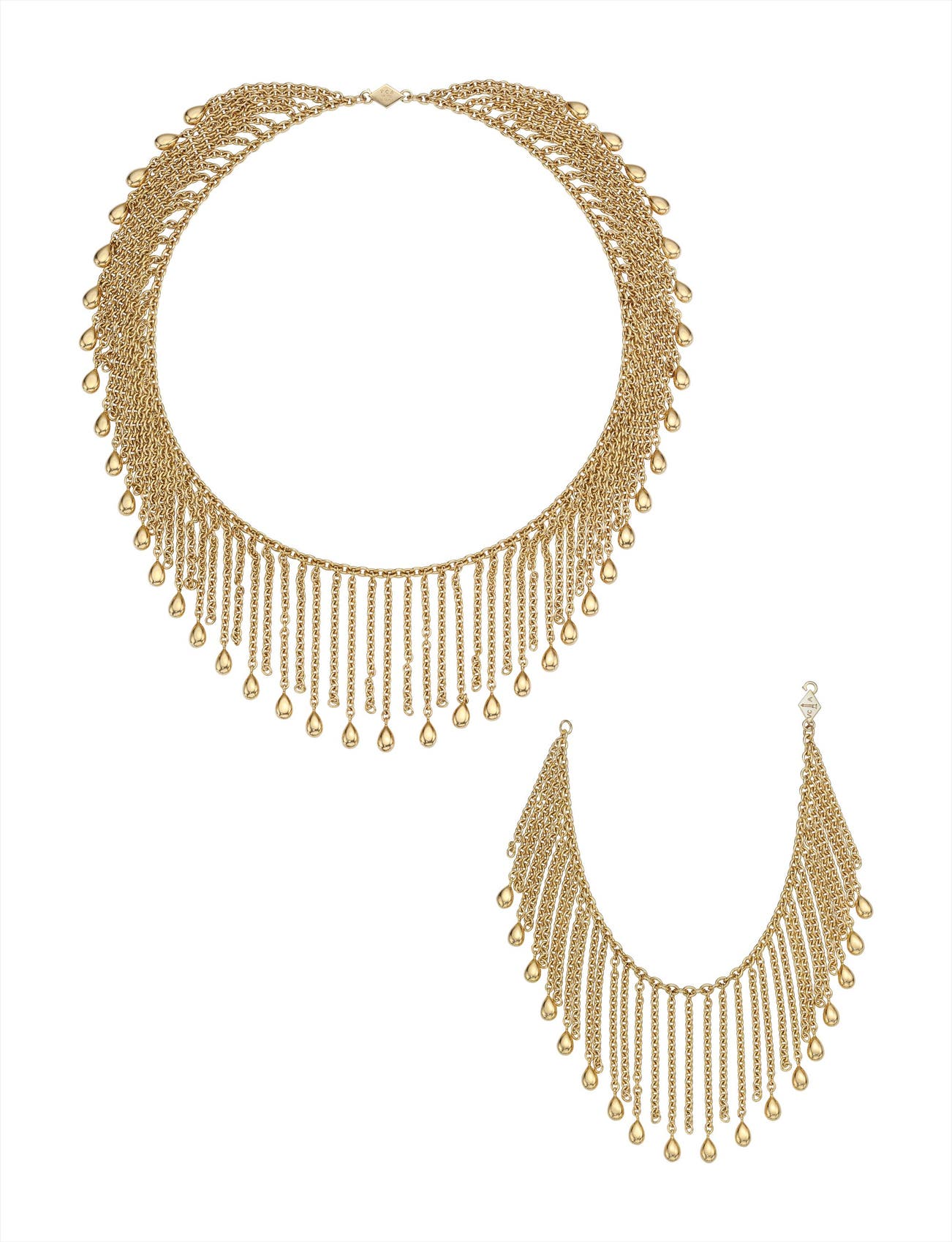 A Gold 'Fringe' Necklace and Bracelet Suite