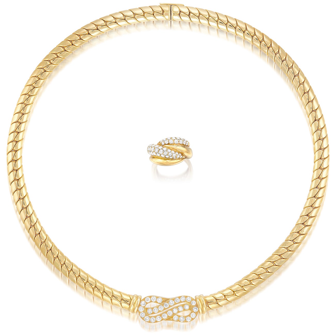 A Set of Gold and Diamond Necklace and Ring