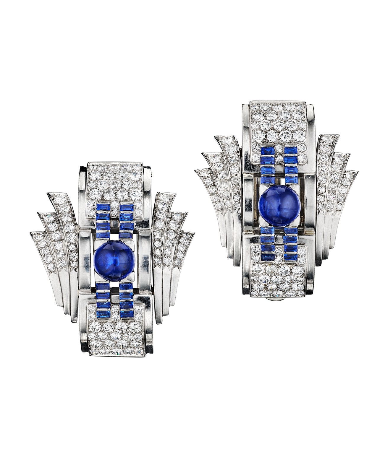 Diamond and sapphire clip brooch, 1920s; together with a similar clip