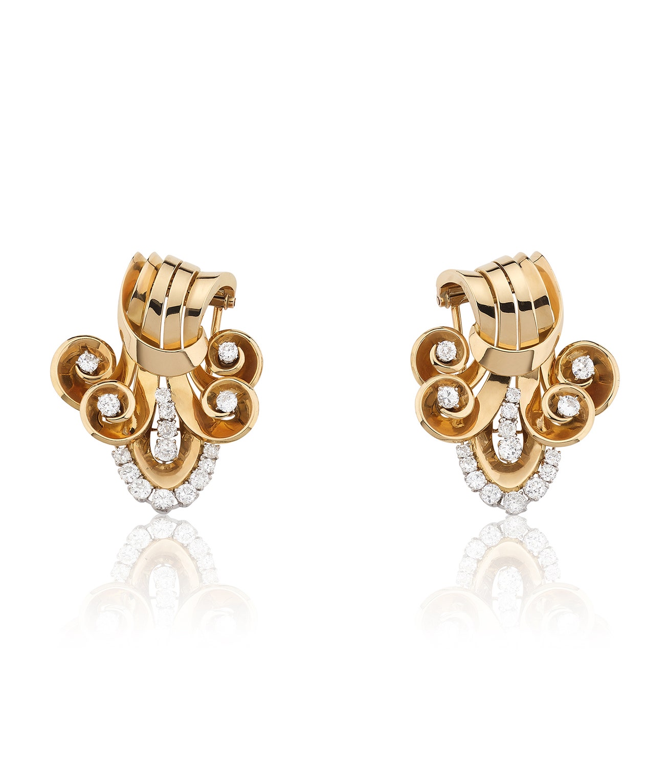 Pair of gold and diamond brooches, circa 1940