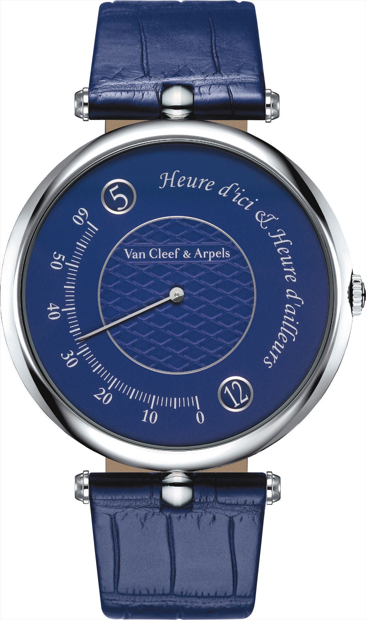 Van Cleef & Arpels has created a masculine complication piece with dual time zone, fitted with a self-winding movement with double jumping hour and retrograde minutes, that invites us on a journey and exalts the colors of Monaco.