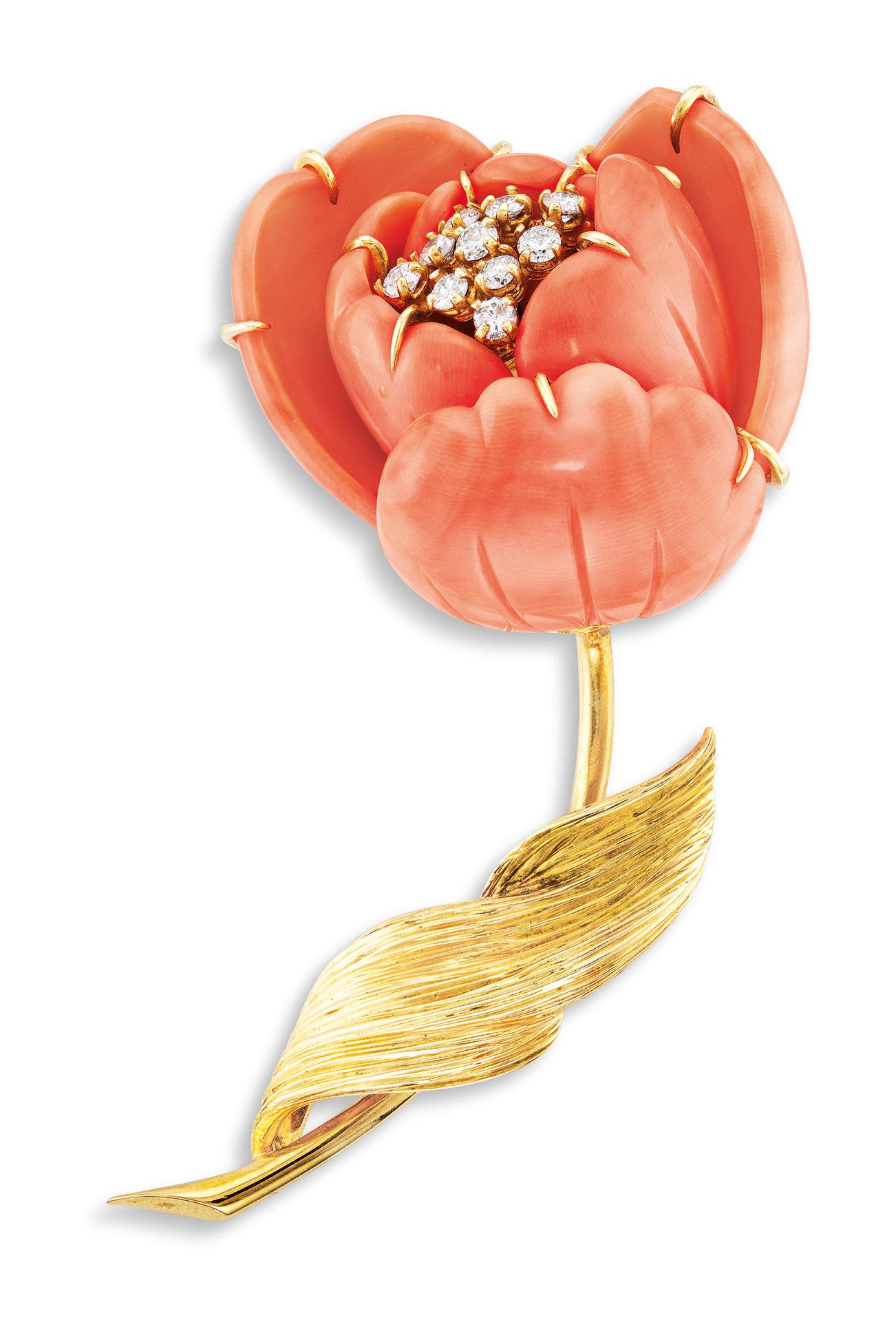 A Coral and Diamond 'Flower' Brooch, Circa 1960