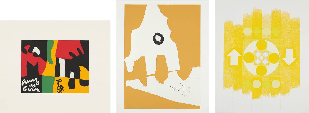 Three screenprints, one with die-cut and one with collage in colors, on wove paper, with full margins, two contained in the original wove paper folders.