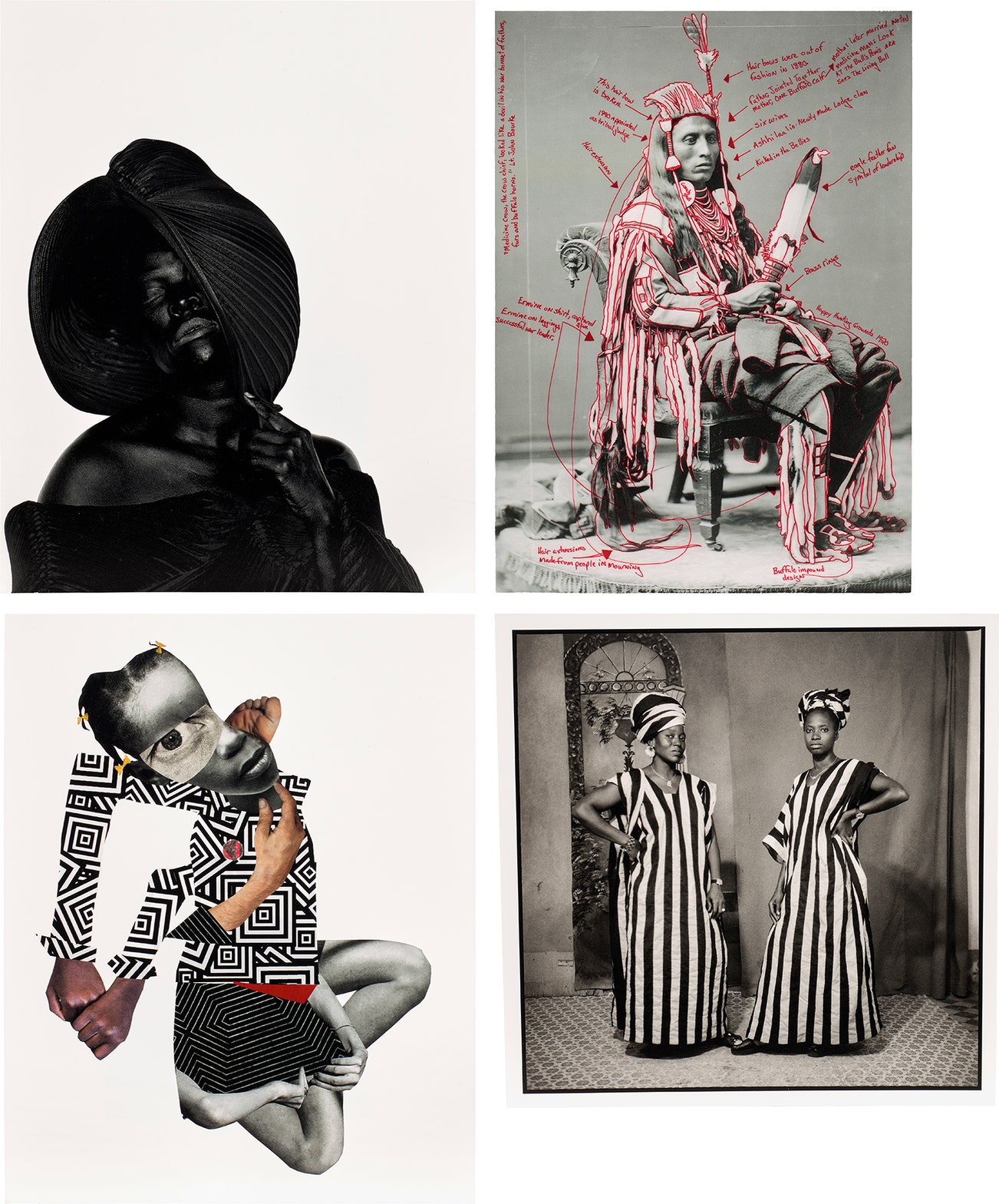 Including Zanele Muholi, MuMu X, 2019; Danielle Bowman, October's Shadows, 2019; Deborah Roberts, We heard the thunder no. 5, 2017; Wendy Red Star, Peelatchiwaaxpaash/Medicine Crow (Raven), 2014; Sanlé Sory, Maliennes Coquettes, 1969; Kyle Meyer, Unidentified 10, 2020; Lauren Noelle Oliver, Pimiento, 2020; and Stanley Wolukau-Wanambwa, Fleet Street, from All My Gone Life, 2014-16