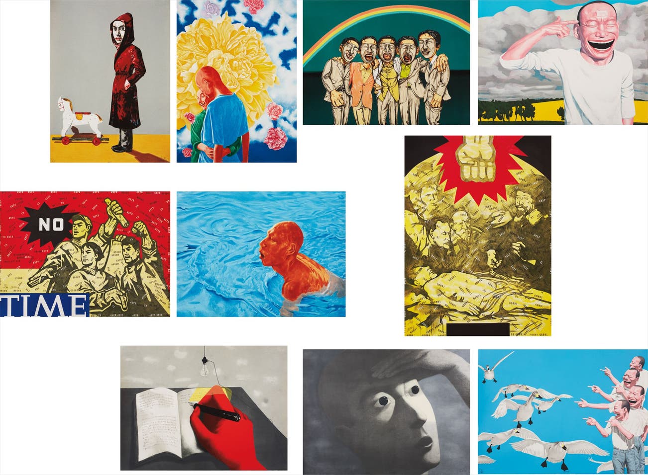 Fang Lijun; Wang Guangyi; Yue Minun; Zeng Fanzhi; and Zhang Xiaogang