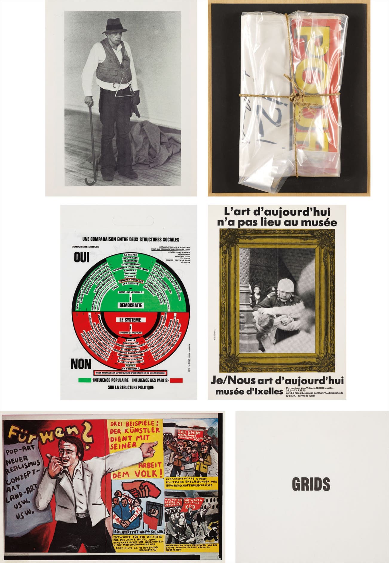 Including works by: Anatol, Carl Andre, Igninio Balderi, Ben Vautier, Joseph Beuys, Christian Boltanski, Jacques Charlier, Christo, Johannes Cladders, Pierre Daquin, Hanne Darboven, Robert Filliou, Hans Haacke, Pierre A. Hubert, Douglas Huebler, Jörg Immendorf, Jean Le Gac, Sol LeWitt, Bernd Lohaus, Konrad Lueg-Fischer, Annette Messager, J. Nicola, Yoko Ono, A.R. Penck, Jacques Pineau, Sigmar Polke, Katharina Sieverding, Klaus Staeck, and Paul Van Rafelghem
