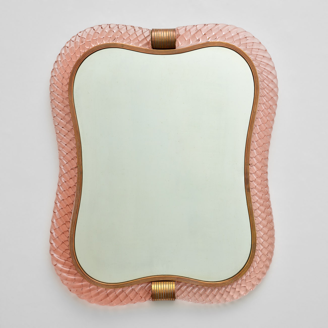Mirrored glass, coloured a treccia glass, brass.