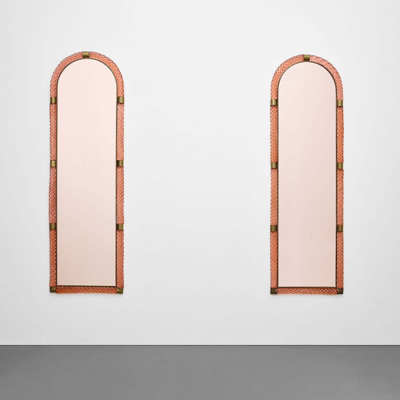 Coloured a treccia glass, coloured mirrored glass, brass.
