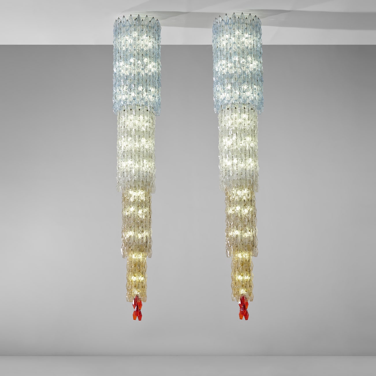 Custom pair of monumental 'Poliedri' ceiling lights, from the Teatro Giacosa, Aosta