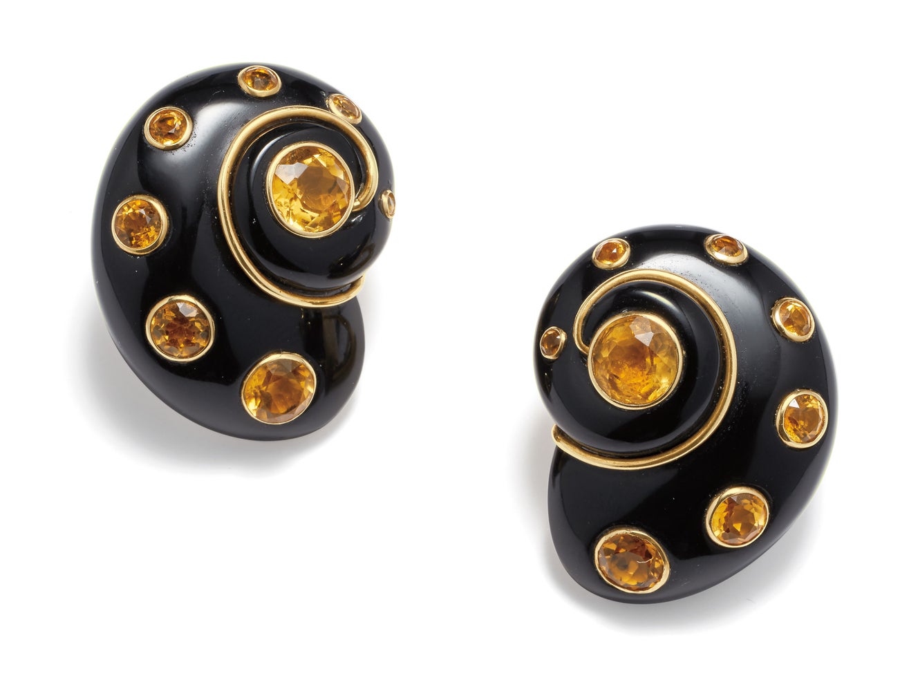 A Pair of Citrine, Onyx and Gold Earrings