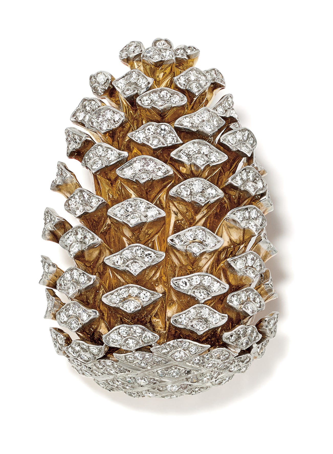 A Diamond, Platinum and Gold ‘Pine Cone’ Brooch/Pendant