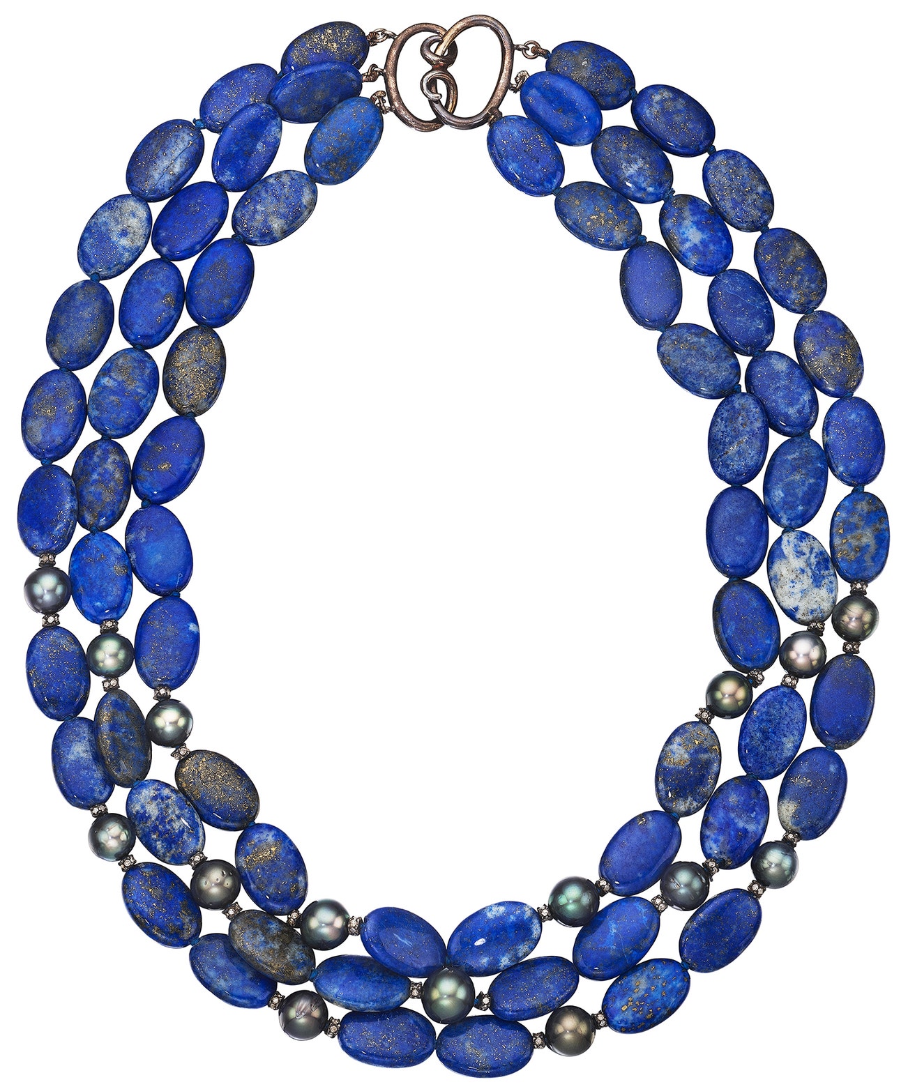 Lapis Lazuli, Cultured Pearl, Diamond and Silver Necklace