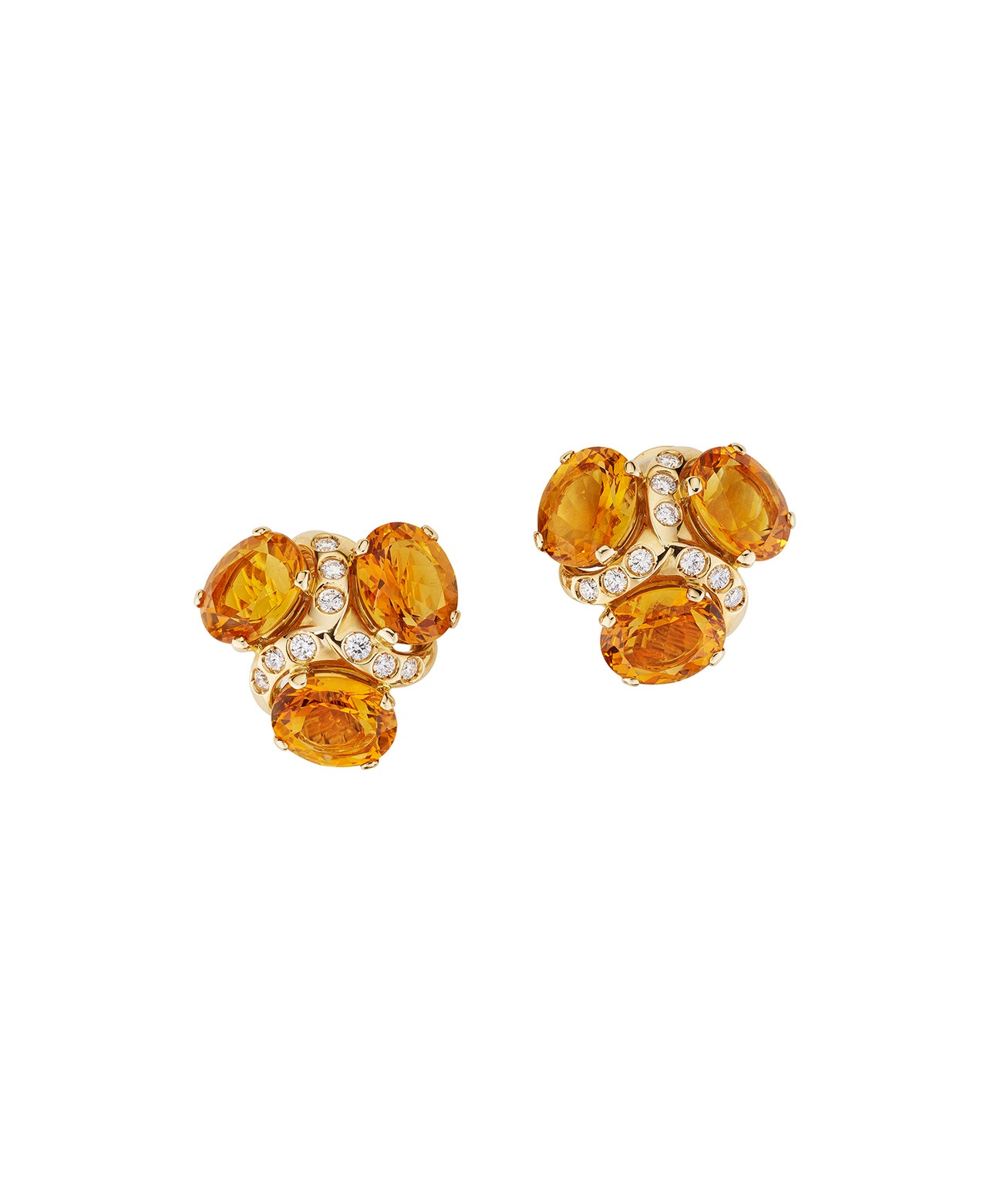 Citrine and Diamond Earclips, 'Three Stone Earclips in Citrine'
