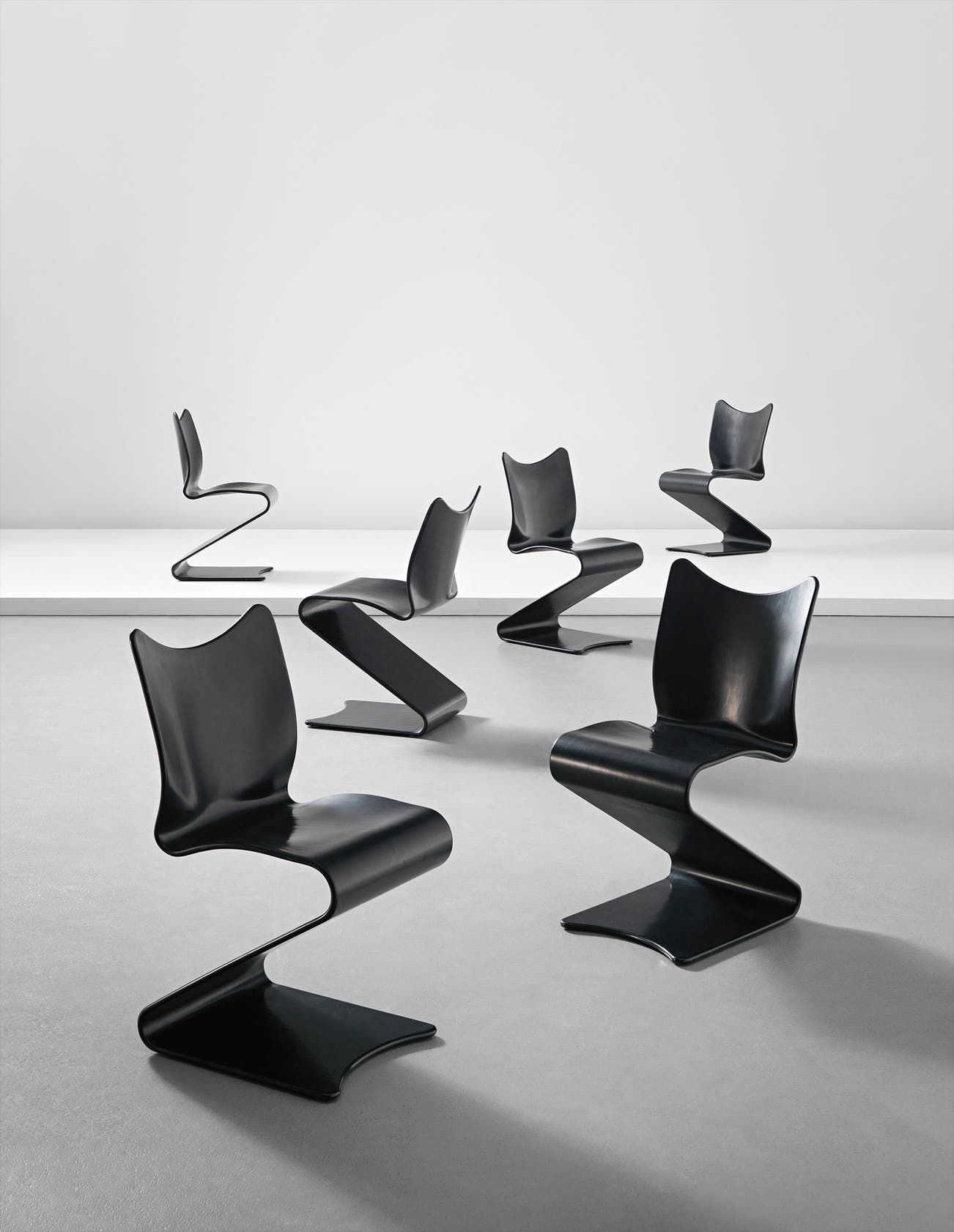 Manufactured by A. Sommer, and distributed by Gebrüder Thonet, Germany. Underside of four chairs with manufacturer's paper labels with THONET.