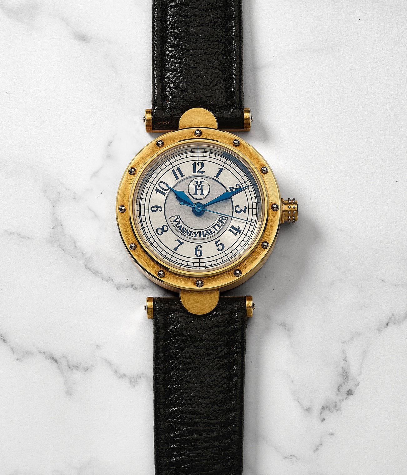 Vianney Halter is more than a watchmaker, he is a mélange of inventor, mad scientist and time traveler! His watches are definitely inspired by the science fiction steampunk imagery of the 19th century with their original shapes, porthole dials and riveted cases. He is considered as one of the founders of Modern Independent Creative Horology. A movement born in the late 1990s, this period saw the arrival of young talented watchmakers who completely disrupted the traditional watchmaking industry. These watchmakers, such as Felix Baumgartner of Urwerk, Denis Flageollet of De Bethune or Vianney Halter created timepieces like nobody had every seen before.