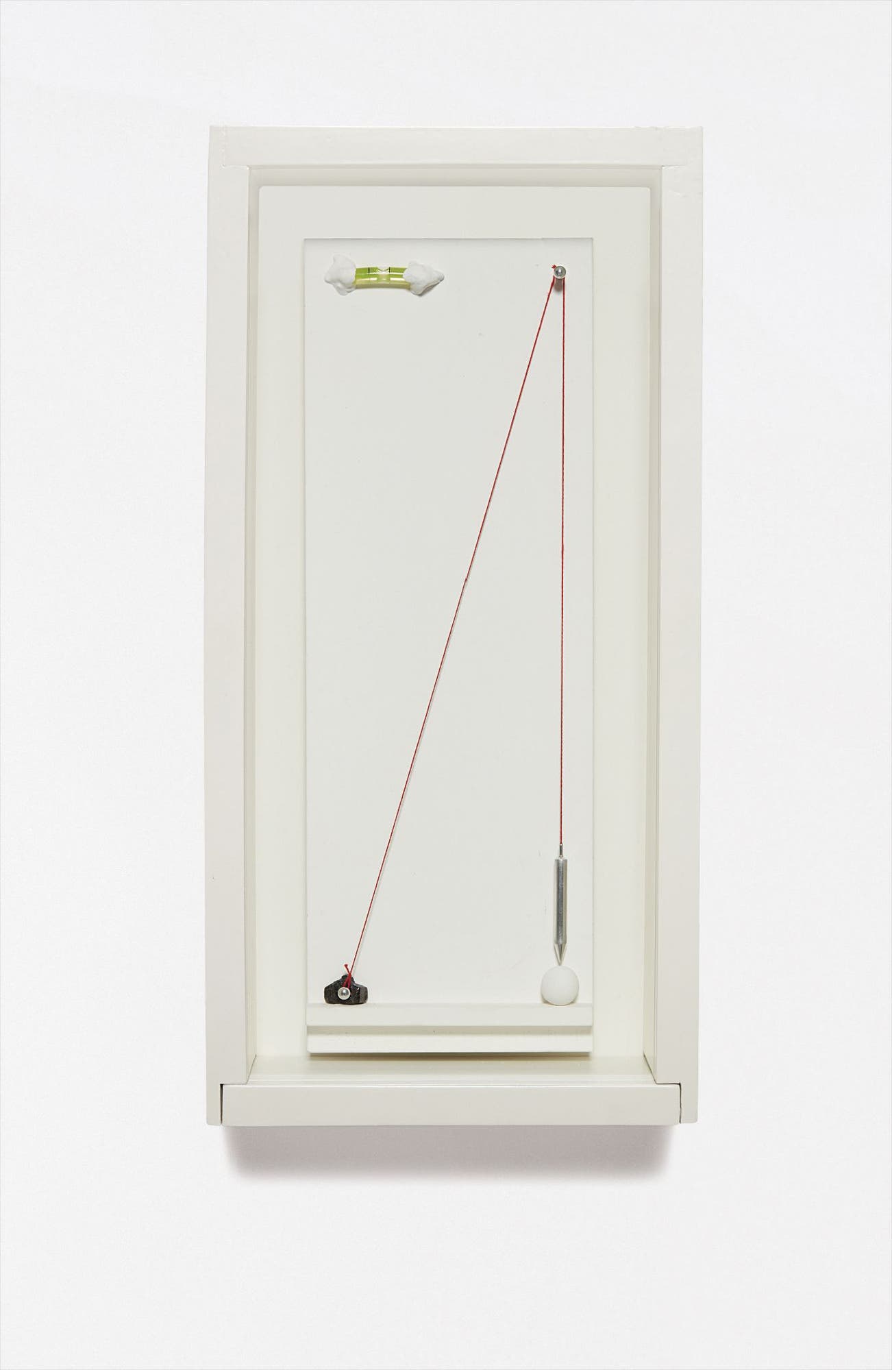 painted plaster, glass, plumb line, coal and wood