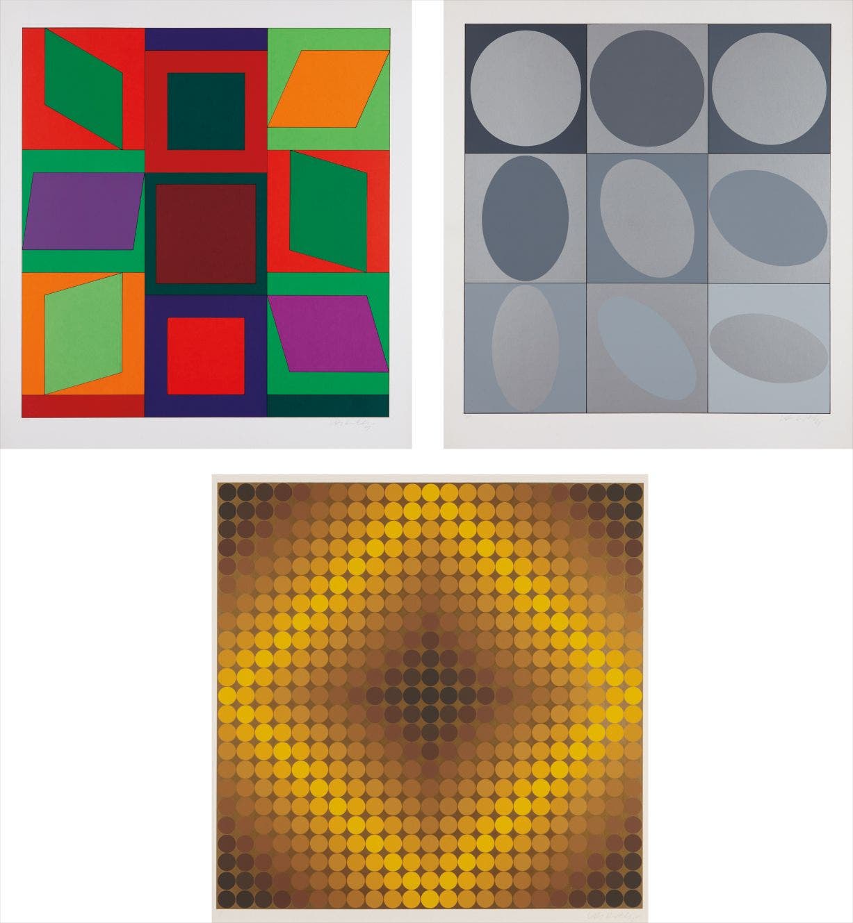 All signed and numbered 11/150, 21/150 and 148/200 in pencil, published by Denise René, Paris (with their blindstamp), Diaf framed.