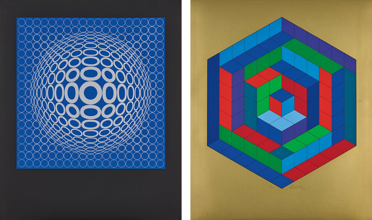 6 screenprints signed and numbered 14/340 in pencil and black ink, further signed in pencil on the title page and stamp-numbered 14/340 on the justification (there was also an edition of 170 impressions for Foundation Vasarely annotated 'F.V.' and 10 artist's proofs), co-published by Studio Bruckmann, Munich and Éditions Lahumiere, Paris, all unframed.
