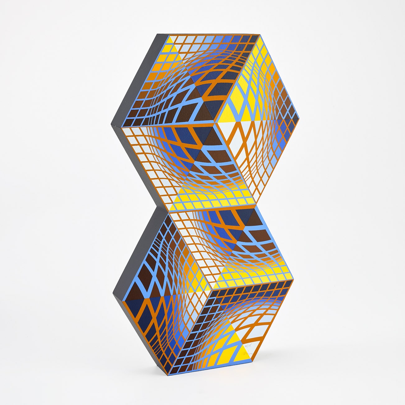 Wood multiple hand-painted with acrylic in colours on both sides.
