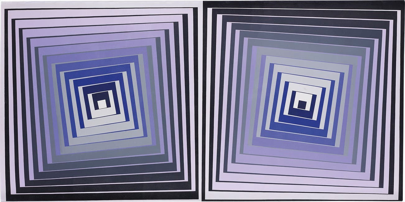 Signed 'vasarely' lower right; signed, titled and dated 'P.1050 VASARELY "INOGUE" 1975/1980 vasarely' on the reverse. This work is accompanied by