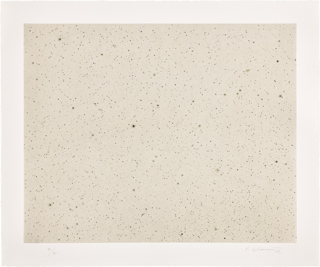 Etching and aquatint, on Gampi Chine collé to wove paper, with full margins, accompanied by the artist's book with two etching, aquatint, and drypoints and hand-set text, The Stars, by Eliot Weinberger, in the original photogravure dust jacket, contained in the original handmade paper covered portfolio.