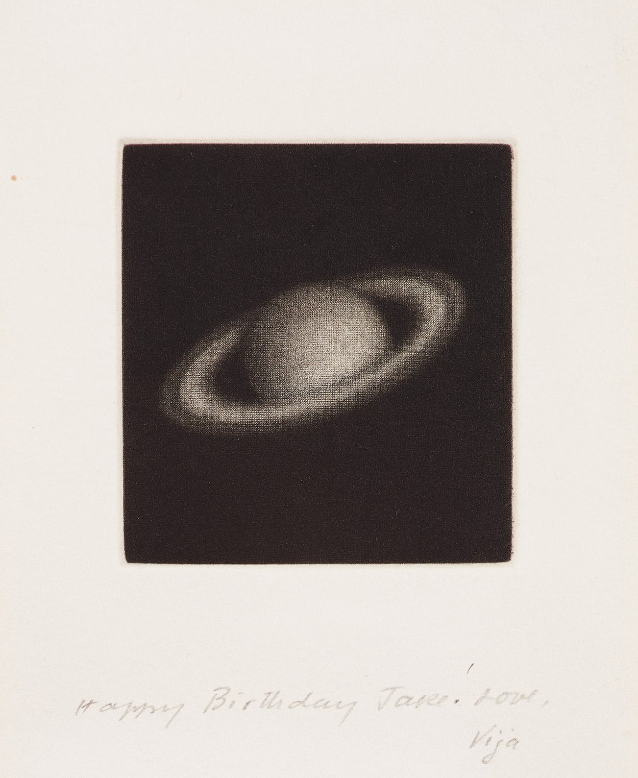 Dedicated 'Happy Birthday Jane! Love, Vija' in pencil, a proof (aside from the edition of 120 bound and 3 loose artist's proofs), framed.