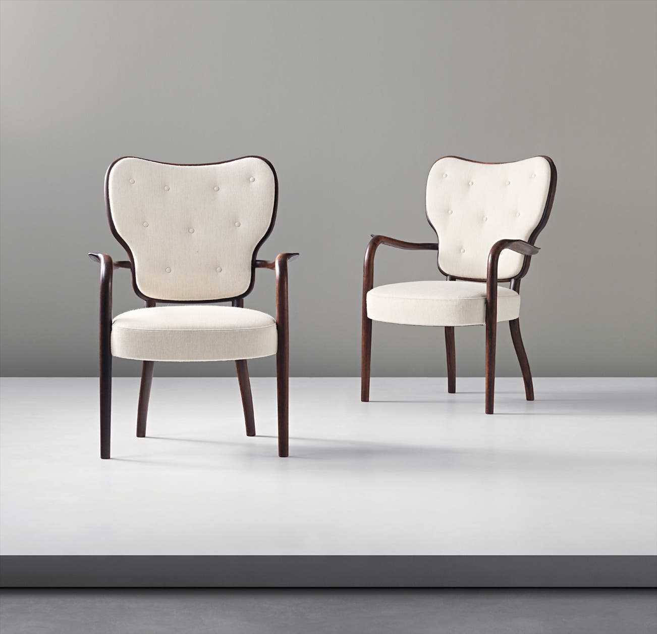 Rare and important pair of armchairs, from the Royal Suite, Radiohuset (National Broadcasting House), Copenhagen