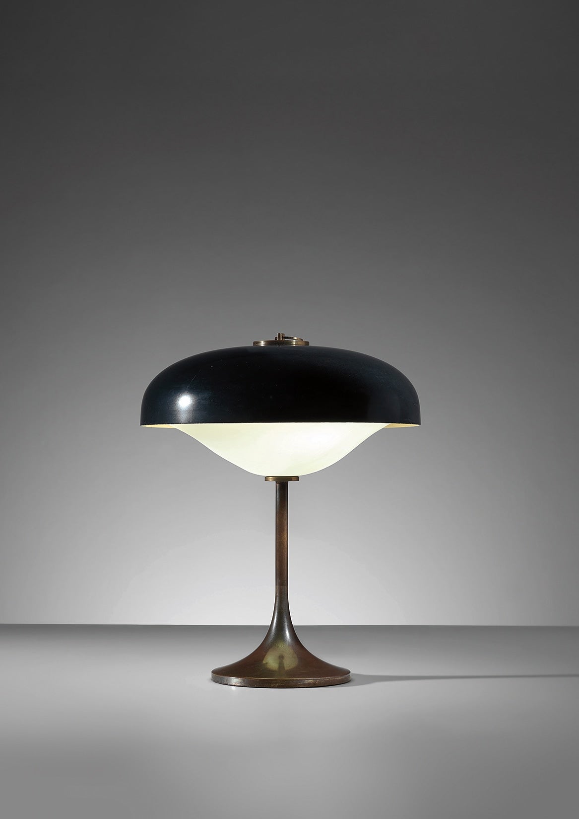 Painted aluminium, brass, brass-plated steel, glass.