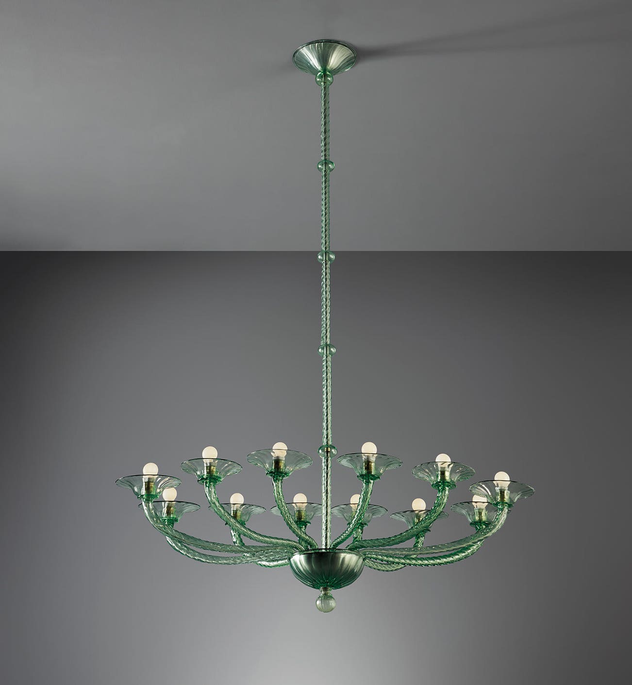 Produced by Venini & C., Murano, Italy. Interior steel housing unit impressed VENINI/MURANO and further impressed 2072.