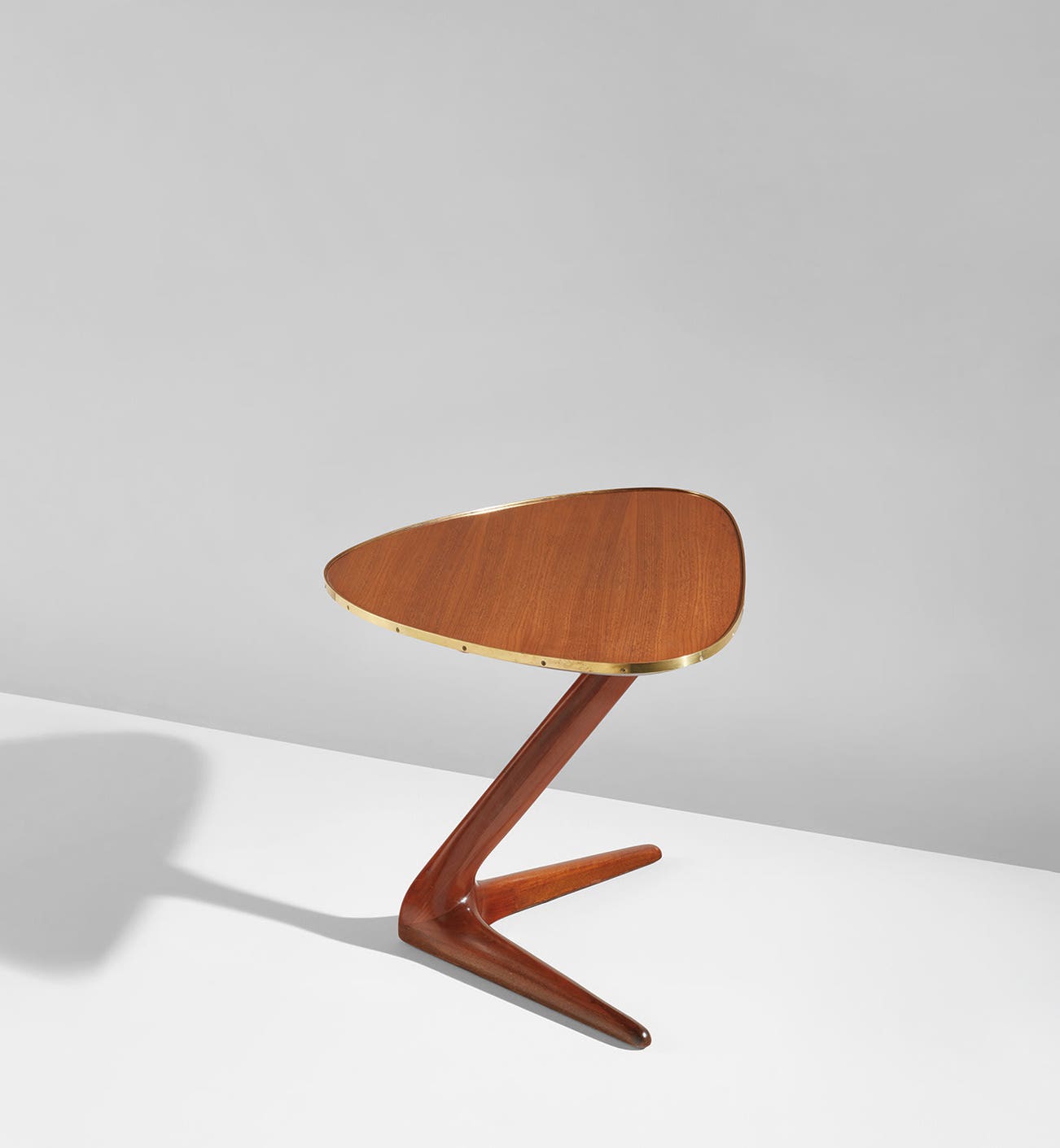 Walnut-veneered wood, walnut, brass.