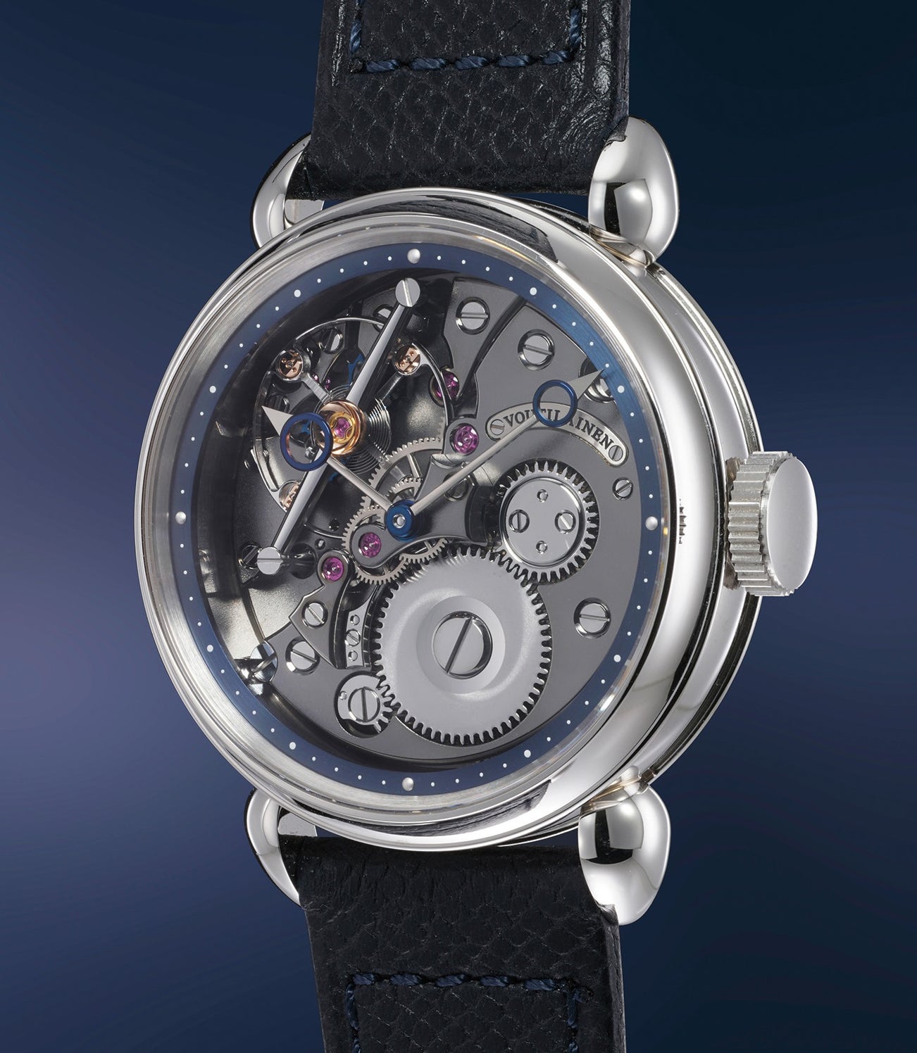 Voutilainen’s movements can undoubtedly be described as works of art for which every shape has been carefully thought out and executed. Every component in his watches, from the bridges to the tiniest of screws, involves manual labor, may it be adjusted tolerances, polishing, angling and so on.