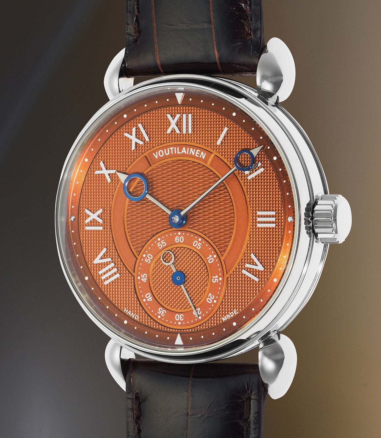 The heavily modified Voutilainen caliber is a breathtakingly beautiful and precise movement with extreme attention to detail.