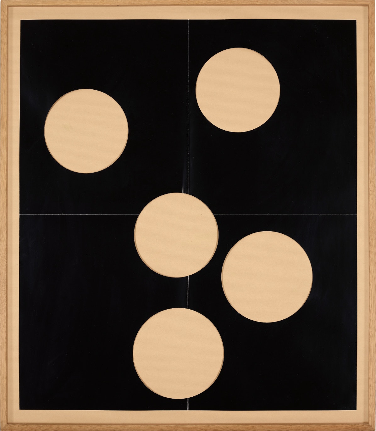 Black vinyl paper with circular cut-outs, folded into quarters (as issued), with the original cardboard box with screenprint on lid.