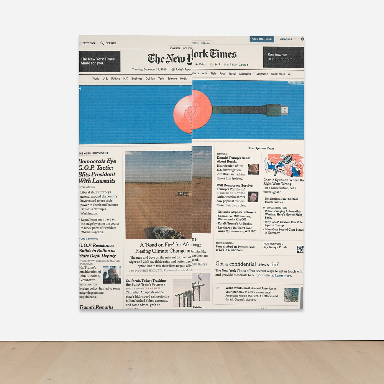 signed and dated "Wade Guyton 2016" on the overlap