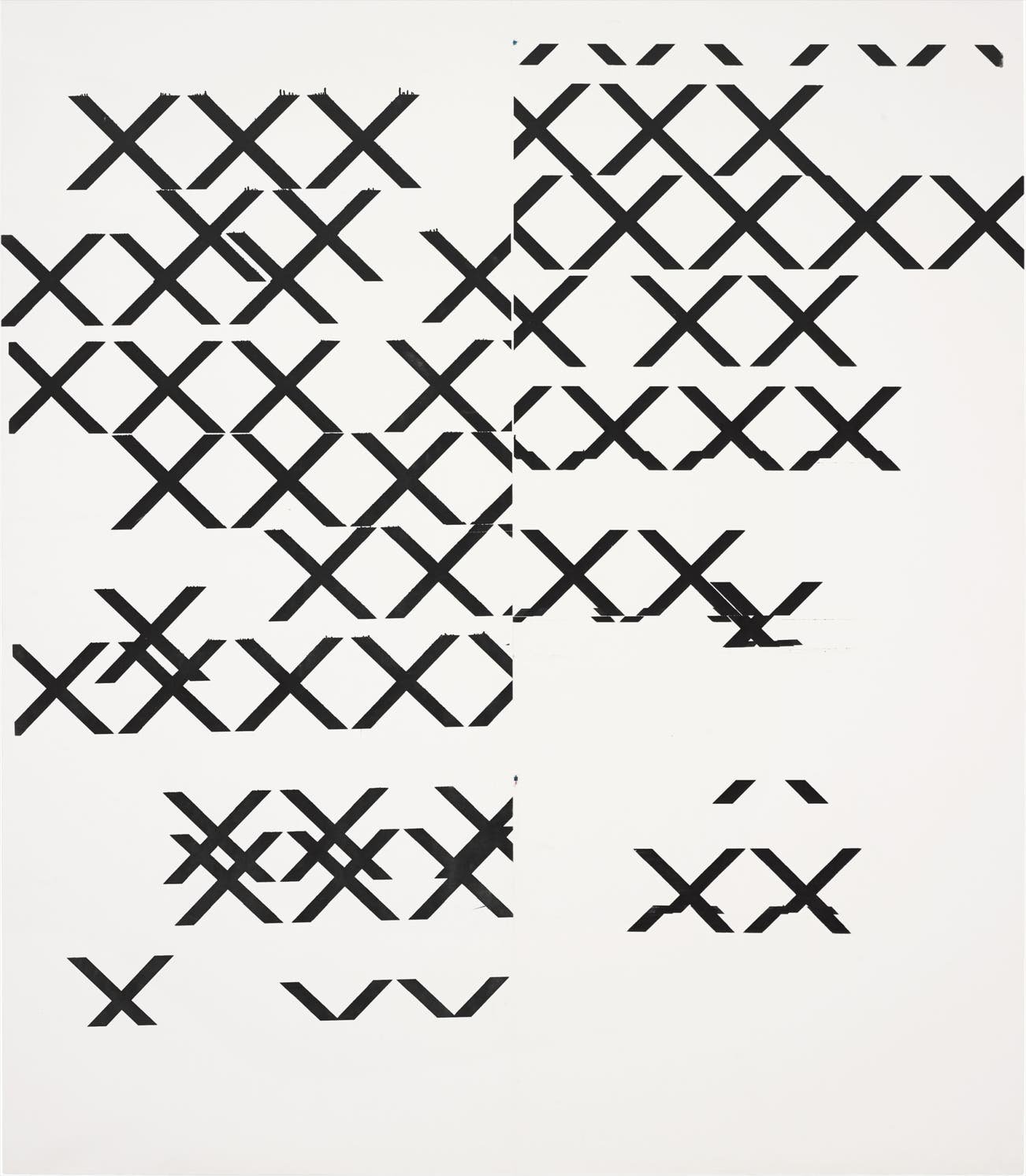 In Untitled, 2006, Guyton transcribes one of his earliest motifs - initially explored in his drawings on the appropriated pages of books and magazines - in a jarringly geometric yet irregular pattern that references the fallibility of technology. Slightly blurred and visually arresting, Guyton’s Xs beg to be read. One of the most common symbols in the Roman alphabet, the X is reframed by Guyton as a conceptual provocation; challenging both the viewer and technology, Guyton captures the imperfection in the mechanization of printing, much in the manner of Pop master Andy Warhol’s imperfect silkscreen process. In fact, Guyton describes his production of these works as a simple, unsystematic experiment: “I'm also just making dumb marks that don't require the complexity of the photo printer technology - and it's interesting how the printer can't handle such simple gestures." (W. Guyton, quoted in D. Fogle, W. Guyton, J. Rasmussen, K. Walker (eds.), 'A Conversation about Yves Klein, Mid-Century Design Nostalgia Branding, and Flatbed scanning,' Guyton/Walker: The Failever of Judgement, exh. cat., Midway Museum of Contemporary Art, Minneapolis, 2004, pp. 45) It is, in fact, the very imprecision of the printer’s marks upon the canvas that best embodies Guyton’s aesthetic; the shifted, incomplete rows of Xs, the striations and variations in the printer ink’s density and clarity, comingle in a bold declaration of Guyton’s theory on the pictorial landscape. Speaking of Guyton’s inexact symbols, Scott Rothkopf elaborates, “The Xs and bars fell randomly atop the paper, since Guyton couldn’t really control the printer or even imagine exactly where his marks might wind up, especially when he choked the machine by stuffing it with multiple pages at once. This disjunction was particularly evident when he printed motifs that acted like porous barriers, whether chunky bars, rows of Xs, or a black rectangle pocked with holes suggesting a goofy face of digital Swiss cheese.” (Wade Guyton: OS, exh. cat., Whitney Museum of American Art, New York, 2012, p. 17)