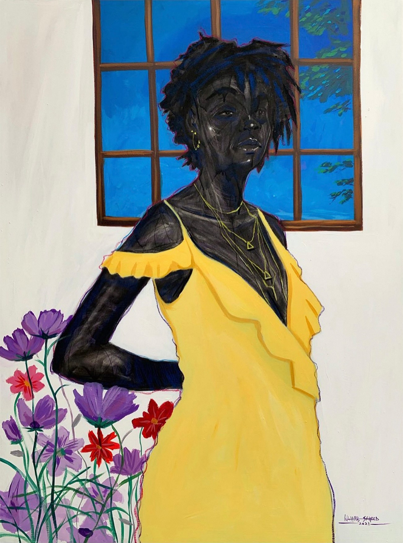 signed and dated 'Wahab Saheed 2021' lower right; signed, titled and dated 'DAYTIME BLUES WAHEB SAHEED 2021 ©' on the reverse