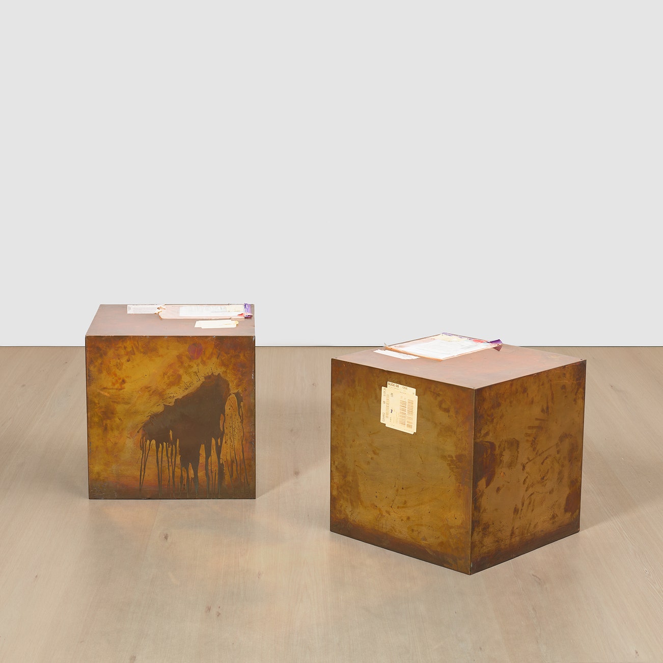 Two works: (i) 20-Inch Copper (FedEx® Large Kraft Box ©2005 FEDEX 330508 REV 10/05 SSCC), International Priority, Los Angeles–London trk#868587725897, October 2–5, 2009; (ii) 20-Inch Copper (FedEx® Large Kraft Box ©2005 FEDEX 330508 REV 10/05 SSCC), International Priority, Los Angeles–London trk#868587728006, October 2–5, 2009